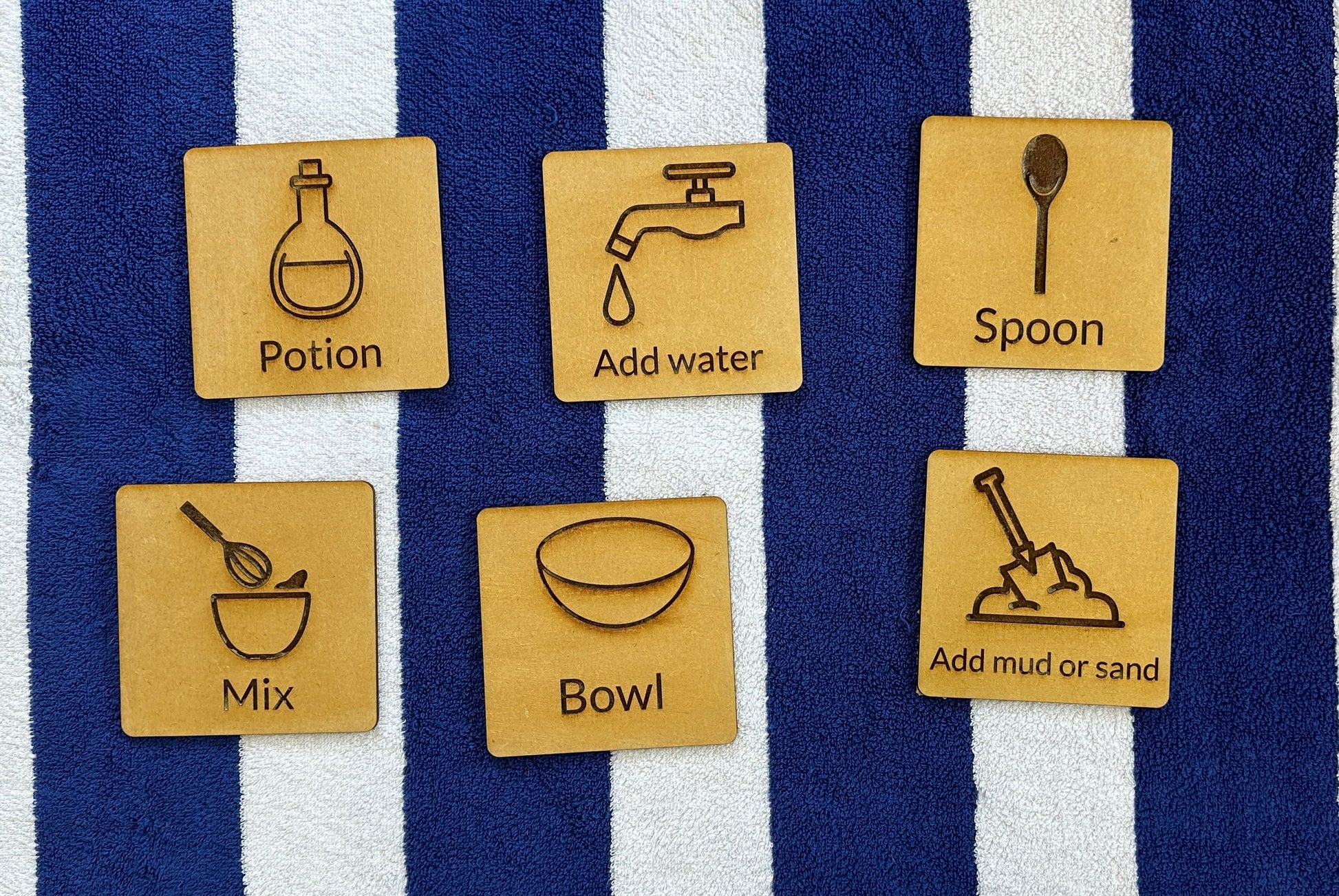 Set of 6 wooden engraved discs - curved corners