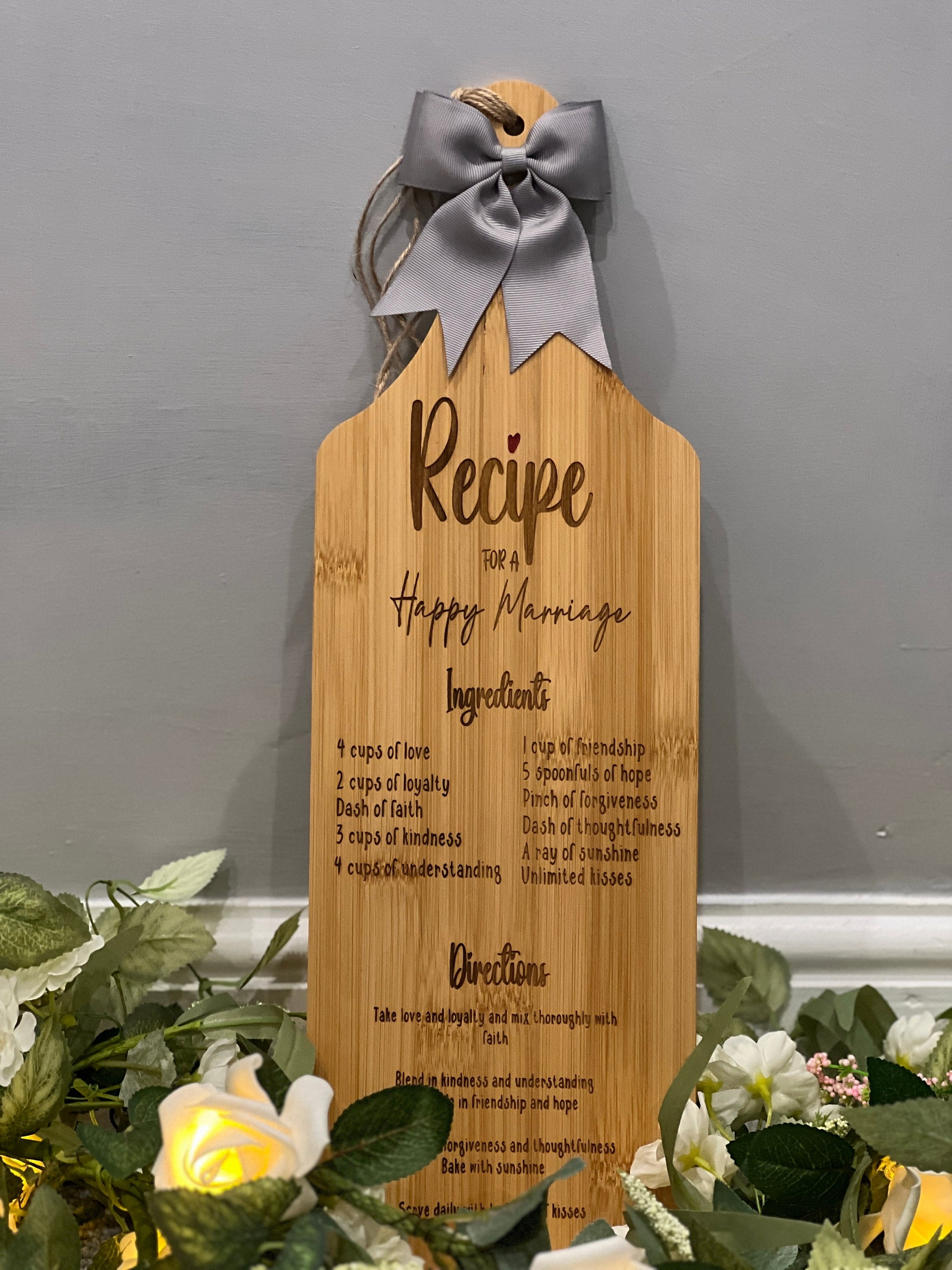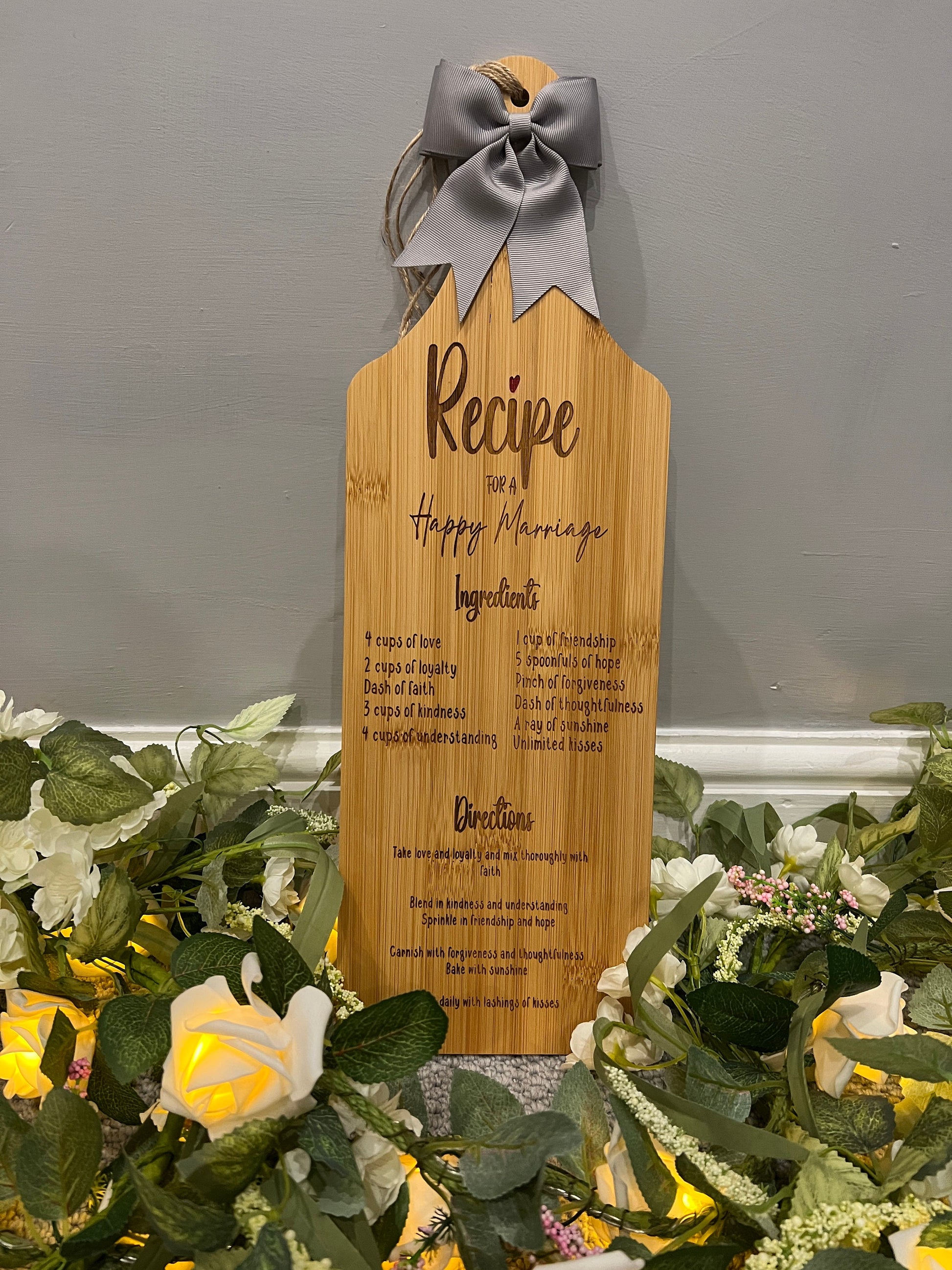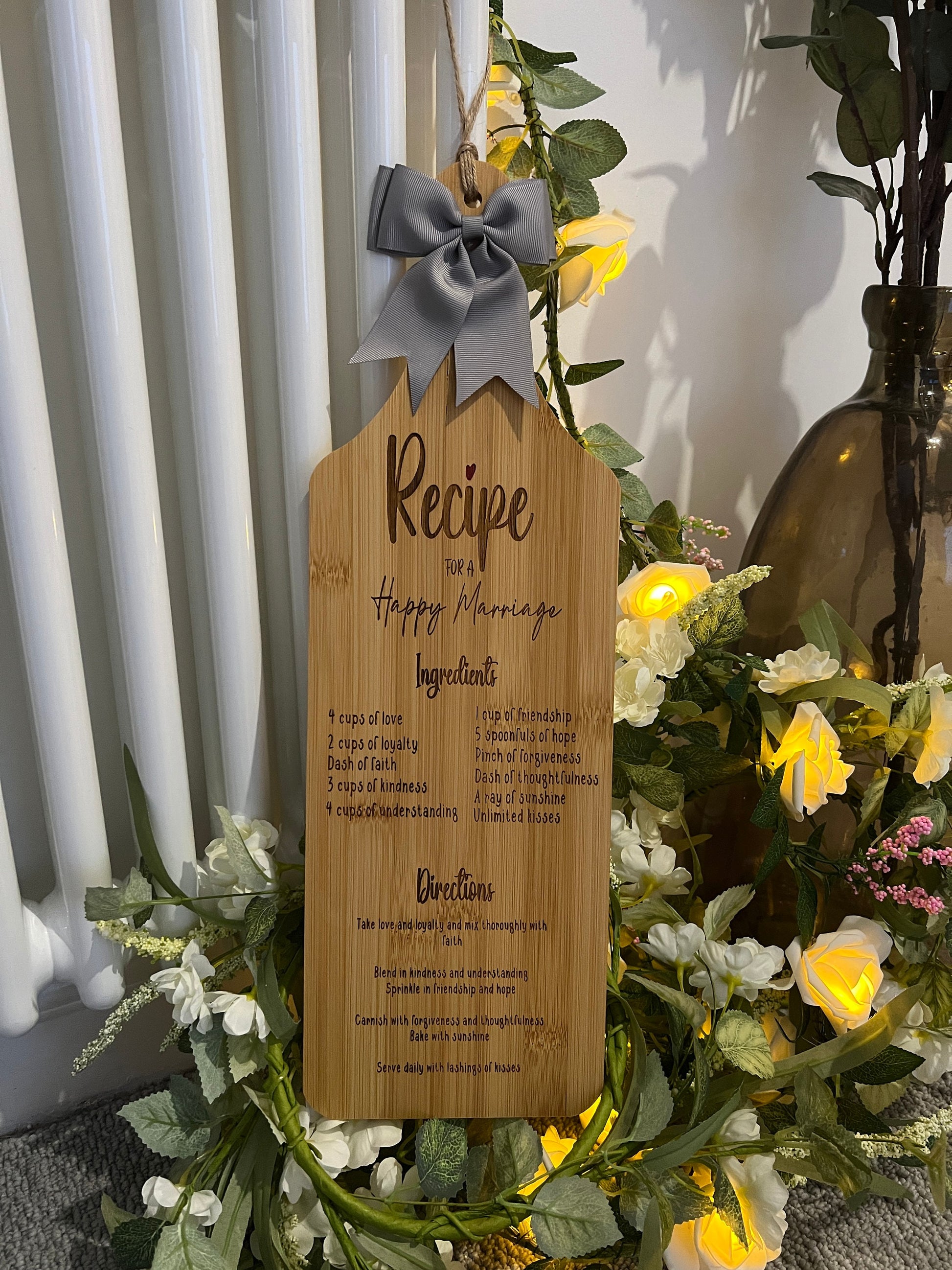 Wedding Gift - Recipe for Happy Marriage - bride & groom - celebration - cutting board - cheese board - carciature board