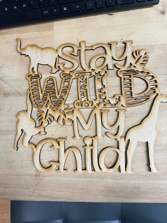 Children's bedroom wall sign/plaque "stay wild my child" with animals theme - Wood